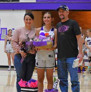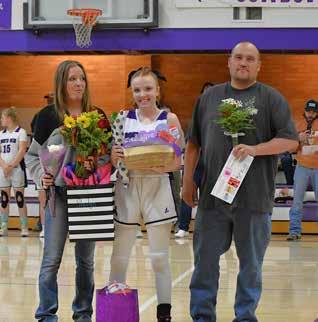 but there was a substantial delay in play due to one of the Patriot players getting a cut on her hand and blood on the floor. It took some time to find and clean all of the blood from the playing surface but once it was done the game got back underway. As play resumed the scoring was still few and far between however the Lady Cowboys did enough to grab the lead and head to the locker room up four points. The Lady Cowboys kept things rolling in the third and increased the four point lead to seven. In the fourth quarter the Lady Cowboys had to rely on foul shooting to hold off the Lady Patriots. North Gem went to the line for twenty foul shots in the fourth quarter alone. Although their percentage wasn’t high they made enough to secure the win and earn a home play-in game. All three senior girls on the team were able to help add to the final score helping earn the win and making great senior night memories.
