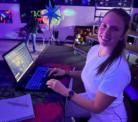 “DJ FI” (Fiona Benson) ran the sound system throughout the night, playing a mix of songs for kids and adults alike as the two groups danced in the blacklit neon gymnasium. Benson is professionally trained as a dancer, and used that skill and knowledge to lead the dancers through various games and activities throughout the night.