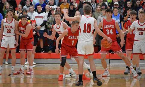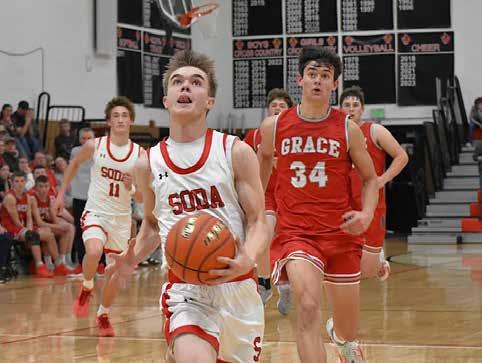 ing a one point lead. Then the game slowed with scoring being limited. Following several timeouts and a lot of back and forth it was the Cardinals that ended the game on top by just three points. In a game full of seniors and experienced players it was a pair of sophomores that stood out in this one. Kade Kimball for Grace played some of the best defense I have seen played on the very skilled Cooper Thompson creating several turnovers that helped lead to Grizzlies scores. But it was the Cardinal’s Jaxson Horsley that helped earn the win for Soda Springs. Horsley grabbed some crucial boards while putting up seventeen points including a late game foul shot that helped put the dagger in