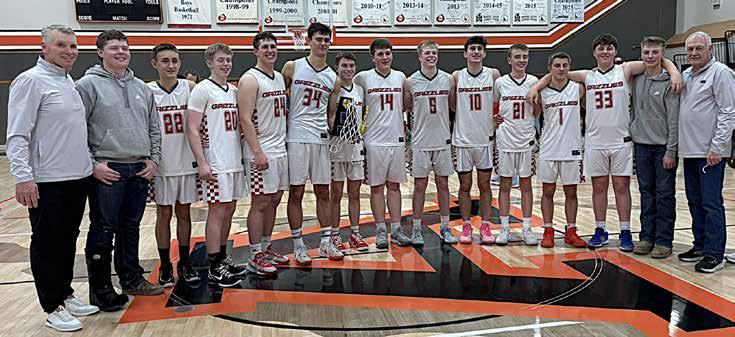 The Grizzlies boys basketball team capped off a wild district tournament last Thursday with a narrow win over the Butte County Pirates. The Grizzlies facing off with the Pirates for a spot in the state tournament has become as common occurrence in February as President’s Day. In several cases the games are very competitive and entertaining to watch for fans of the two teams but this year's tournament was especially close. In game one of the best of three format the Pirates grabbed the win by just a single point. During game two the Grizzlies answered back with a one point victory of their own. That set up a winner take all district championship game that took place last Thursday. The game took place on the neutral court in Aberdeen. Each school brought dozens of fans with full student sections and cheerleaders with the Grizzlies also featuring their class leading pep band. The stage was set so all that was left was for the players to take the floor for thirty-two minutes of battle that would end in either glory or crushing defeat. The game was as expected very close right from the get go. The teams traded baskets in the early going with the Pirates eventually gaining a slight advantage. Then sophomore standout Carter Mecham entered the game for the Grizzlies. In just two quick possessions Mecham took the Grizzlies from three points down to up three points. With the momentum on their side the