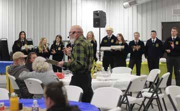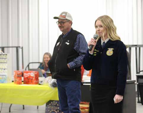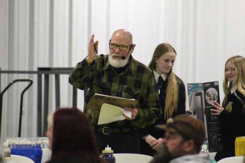 The evening featured ham, potatoes, salad, rolls, and brownies, which were served by members of Malad Chapter FFA. Members also served as auction staff, displaying and transporting auction items throughout the venue. After the guests were welcomed and the food had been served, the live auction began, while the silent auction continued in the background. Many of the items in the auction were created by FFA members, including welding projects, tables, and a large swing rocker.