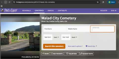 When a community is clicked and the mini-summary appears as a landing page for that community, making it possible for stories, legends, historical photos, genealogies and many other items to be linked to that community. It is expected that submissions from individuals will help develop each community’s presence. You will note another group of resources below the county’s search buttons. This listing is far more robust than the states’ resources, since our focus is on providing easy-to-use localized information. In many counties, 3, 4 or more pages of local resources are listed. Clicking on the “Area Cemeteries” search button displays all known cemeteries in that county. Clicking on any cemetery takes you to FindA-Grave.com, with its inventory of over 1.6 million cemeteries and almost countless graves, many listings provide in-depth information on relatives, dead and living and a whole host of useful information.