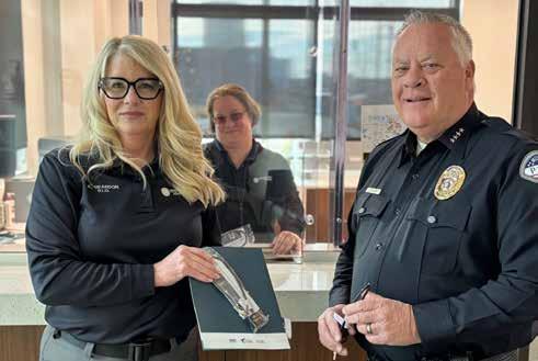 Murray Chief of Police Craig Burnett and Public Information Officer Kristin Reardon display a trigger lock available at City Hall. (Photo courtesy of Murray PD)