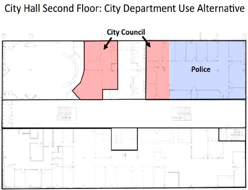 The Arbor Plaza, located within the City Hall courtyard, was bought to help meet the growing need for office space for city employees. The three departments with the largest deficits in space are the police, parks and recreation and the arts guild.