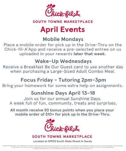 Performances will take place at 7 p.m., April 23 and 24 and at 1 p.m. and 4 p.m., April 25 at the school’s auditorium, 9351 S. Mountaineer Lane (220 East). Tickets are $5-7 and available online through the school’s website: mountjordan.canyonsdistrict.org. Patrons are encouraged to bring nonperishable items to donate to the school’s pantry as part of the cast and crew’s service project.