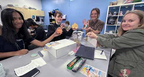 In clay, students pressed real leaves they and their teacher Camille Grimshaw brought in. Many chose glaze colors that matched the actual leaf. Grimshaw said students learned about working with art and creating texture. For some, it was their first experience with ceramics since the class is an introduction to art.