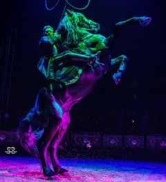 “This show is a blend of traditional circus and contemporary circus. It’s a very up-closeand-personal show where the audience can feel the rhythm of the horse hooves pounding the ground,” said Rachel Gauthier, aerialist and trick rider. “The audience is sitting so close it becomes really intimate. I like the possibility of being connected with the audience and the audience has the same feeling. They feel like they can be part of the story with us.”