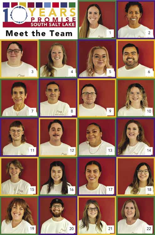 Promise 1. Kelli Meranda: Director 2. Domoina Kendell: Deputy Director 3. Bonnie Owens: Deputy Director 4. Colleen Bradburn: Deputy Director 5. Tori Smith: Business Manager 6. Edward Lopez: Community Engagement Supervisor 7. Ana Garcia: Family Liaison Coordinator 8. Alex Sanchez: Family Liaison 9. Jona Gerlach: Academic Support Supervisor 10. Deborah Peel: Coordinator, Best Buy Teen Tech Center 11. Tate Grimshaw: C2C Facilitator 12. Patrick Holman-Hart: Coordinator, Central Park Community Center 13. Kat Mercado: Coordinator, Cottonwood High School 14. Allison Evans: Coordinator, Granite Park Junior High 15. Maisy Hayes: Coordinator, Historic Scott School 16. Chelsea Francom: Coordinator, Hser Ner Moo 17. Kuilina Larkin, Coordinator, Kearns St Ann 18. Alyson Kyle, Coordinator: Moss Elementary 19. Rebecca Turville: Coordinator, Olene Walker Elementary 20. Cassidy Zekas: Coordinator, STEAM Exploration and Community Center 21. Kristen VanRiper: Coordinator, Utah International Charter School 22. Joey Carlson: Coordinator Woodrow Wilson Elementary To celebrate Promise’s turning 10 in September, several joined up at Central Park to play games, pet animals, eat food, dance and have a great time!