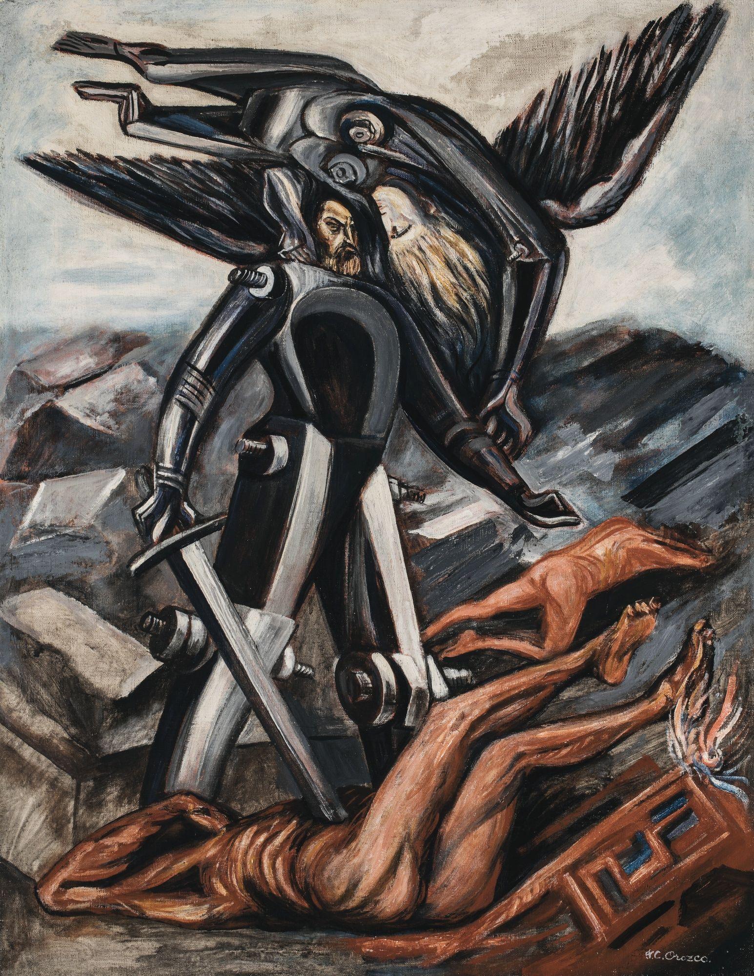 En la esquina derecha de la pintura, una fi ura desnutrida simboliza los restos del páramo del viejo mundo. La fi ura uíaalniño(la entedelmundo), hacia el hombre emer ente, mientras observamosconasombroymiedocomo naceelnuevohombre.