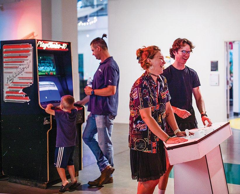 PAGE 4 PHOTO: Visitors gather around a custom-built pinball painter for visitors to create one-of-a-kind artworks with a pinball machine.