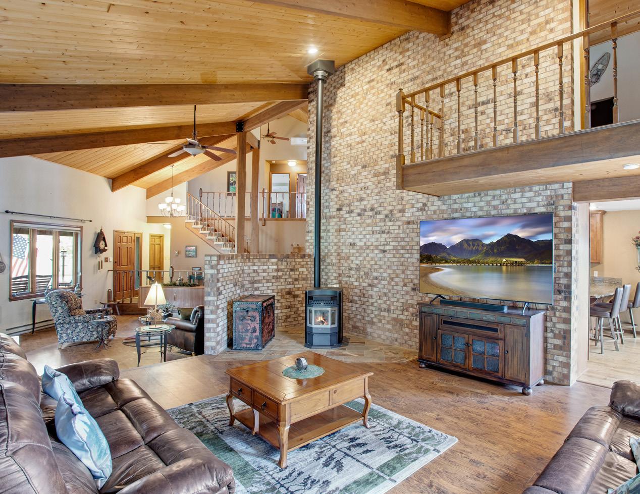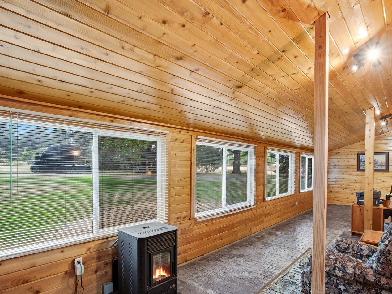 Situated on 3.3 private acres with mature trees, this 4179 sqft 4 bed, 3 bath home includes a oversized attached garage + additional bay for tool/equipment storage, and a 412 sqft detached workshop complete with heating and cooling, dust collection system, 220V and 90amp service + carport. Fully fenced pasture with 2 horse pens, 2 horse stalls + 422 sqft barn, heated auto waterers, power and water. As you enter the home you are greeted with expansive 25’ vaulted ceilings with T&G and solid wood beams above, and Australian Cypress floors under your feet. Wonderfully updated kitchen features knotty alder cabinets with soft close, granite counter tops, induction cook top, new appliances, and pantry. Two finished and temperature controlled sunrooms. Two pellet stoves + six mini-split units provide plenty of heat and cooling throughout. Vaulted ceiling in primary bedroom with balcony. Finished basement includes additional storage and bedroom. Last, but NOT least, you will love the massive composite deck with covered hot tub (included)!