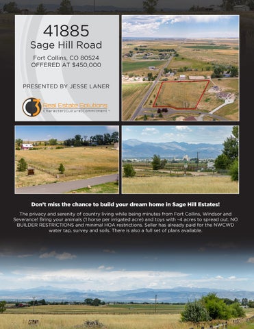 The privacy and serenity of country living while being minutes from Fort Collins, Windsor and Severance! Bring your animals (1 horse per irrigated acre) and toys with ~4 acres to spread out. NO BUILDER RESTRICTIONS and minimal HOA restrictions. Seller has already paid for the NWCWD water tap, survey and soils. There is also a full set of plans available.