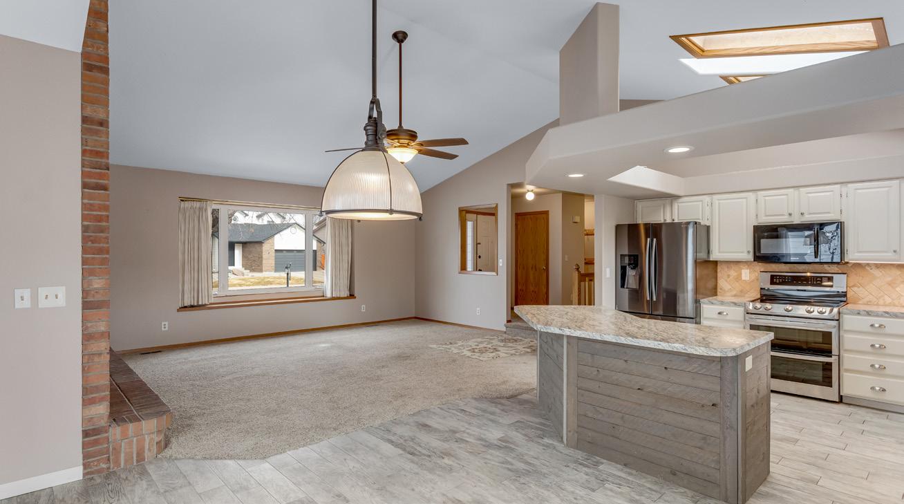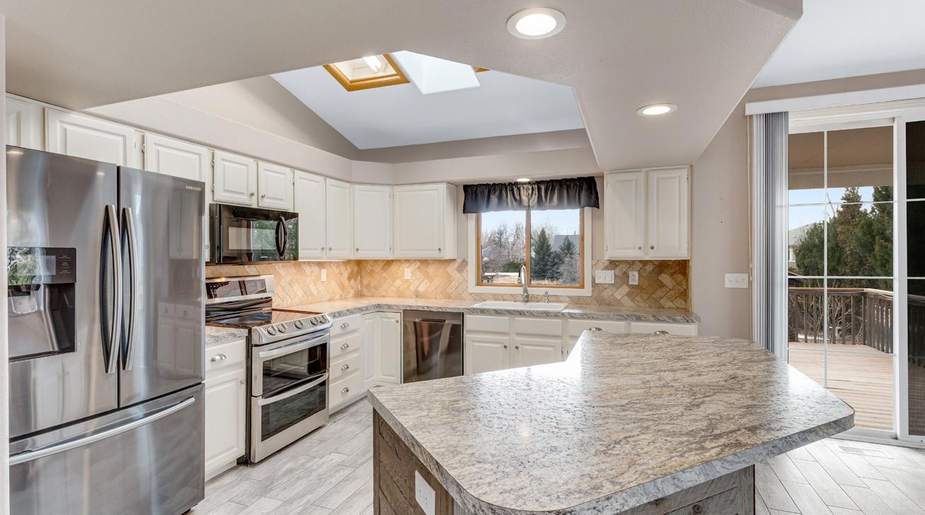 • Kitchen features tile flooring, lazy Susan, Skylight, center island with breakfast bar, plenty of cabinets with hardware and undermount lighting plus a full tile backsplash