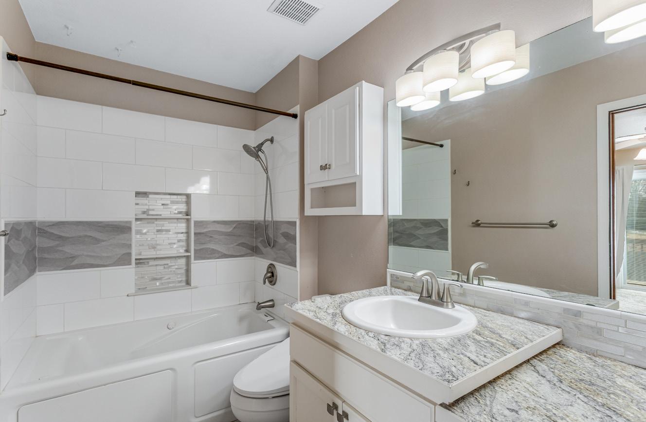 • Guest ¾ bath features upgraded vanity, mirror and light fixture plus tile flooring