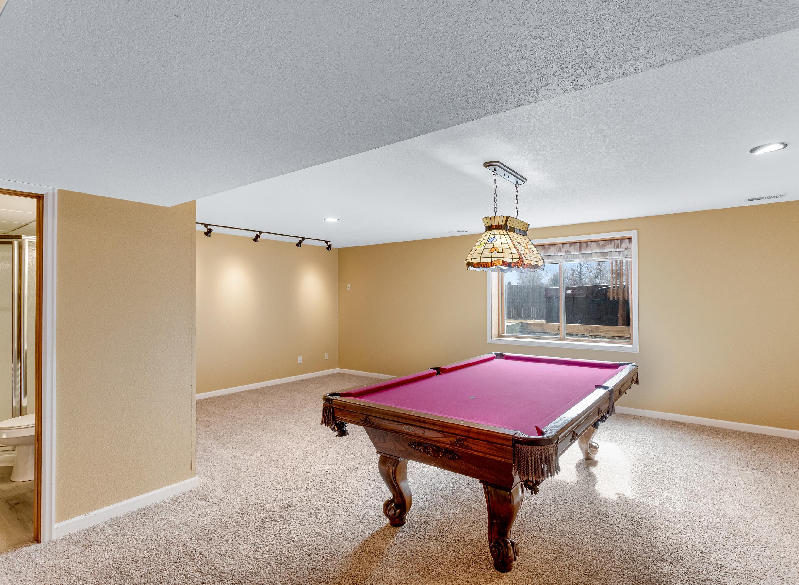 • 21’ X 19’ family recreation room. Billiard table and lamp included