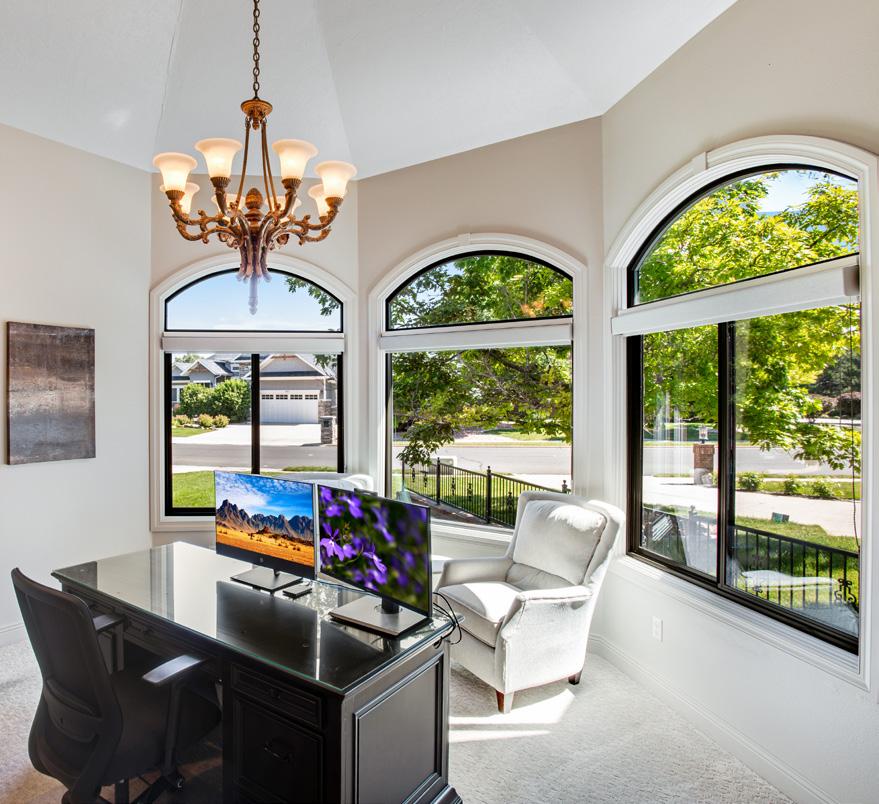 • Front executive office features French doors, vaulted ceilings, chandelier, bay window plus built-in shelving and cabinets