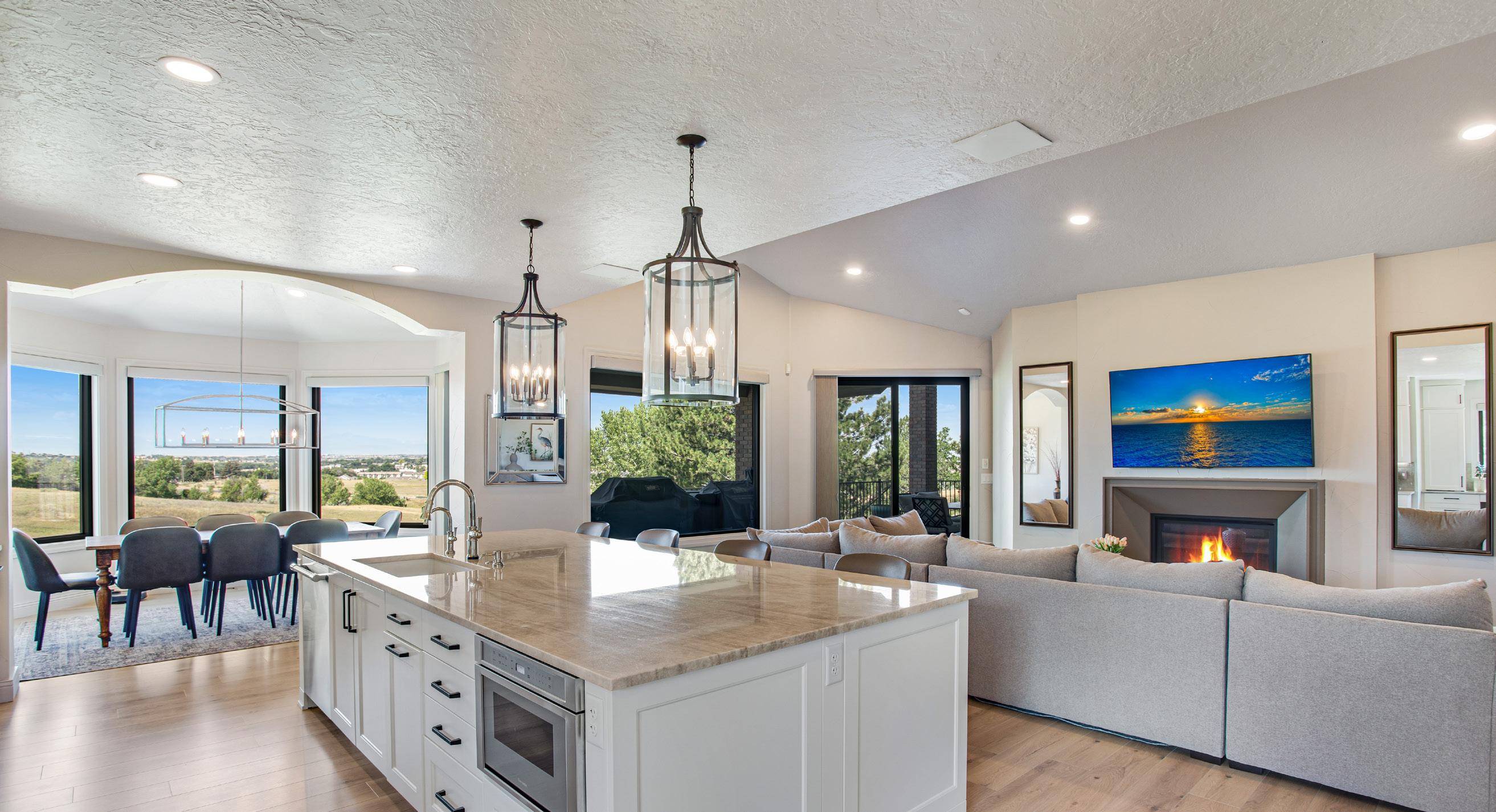 • Family room with gas fireplace, vaulted ceilings, incredible views and is open to kitchen