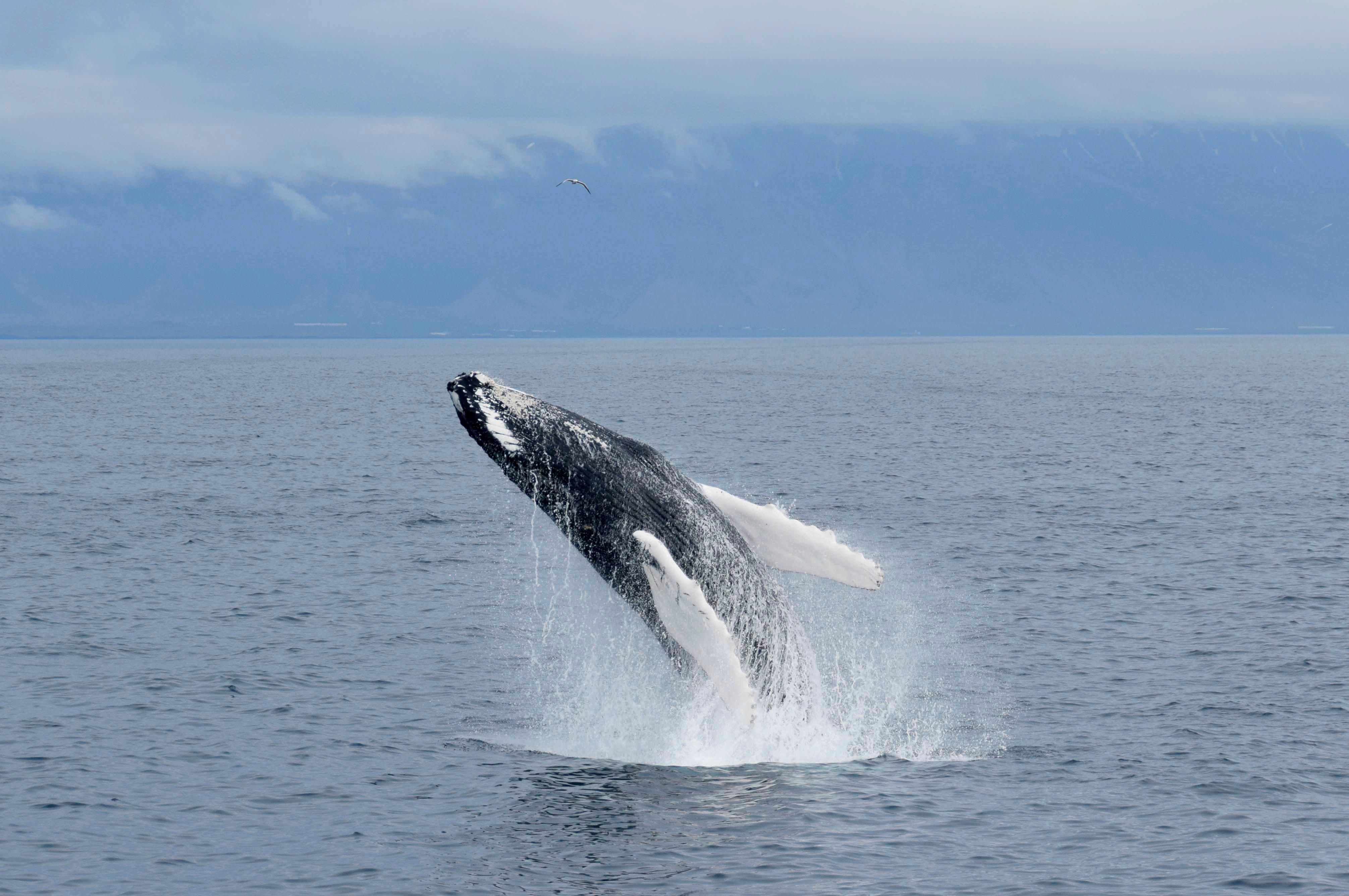 gives you the chance to see humpback whales, minke whales and white-beaked dolphins. The bay is also full of birdlife. Surrounding landscapes offer a beautiful contrast to the vast sea, with stunning mountains on the horizon creating a picturesque backdrop.