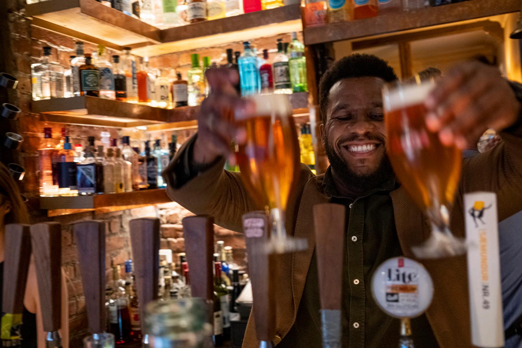 The bar Nína on Hverfisgata offers a low-key atmosphere where people can sit down to talk and watch main sporting events in between. Later at night when the live sports have finished, the lights are dimmed and the music volume increased to get the party started.