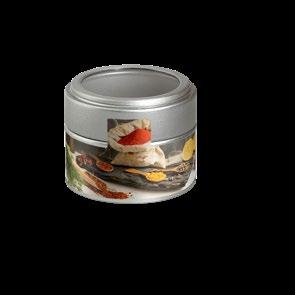 + 4 Gewürze nach Wahl (Seite 106) in Metalldose Mini mit Sichtfenster
