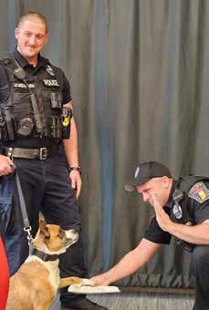 Also, Officer Prichard introduced SRO Jellison and his K-9 partner Newt, who is now certified as a therapy and gun detection dog. Newt took center stage as she repeatedly barked her affirmations to the following Oath of Office read by Officer Prichard and was