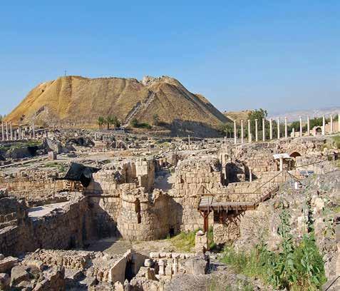 atop the ruins. The Romans conquered the area in 63 B.C. and expanded Scythopolis beyond the tell, adding a colonnaded main street (“cardo”), a hippodrome and a 7000seat theatre. Scythopolis became the leading city of the Decapolis, a loose confederation of ten Greco-Roman cities Jesus visited. By the fourth century, Scythopolis was a Christian city, captured by the Muslims in 634. A massive earthquake destroyed the city in 749.