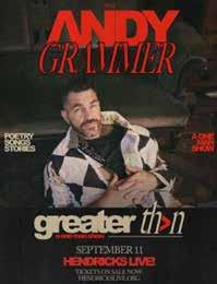 TICKETS: Tickets for John Hiatt and Andy Grammer are on sale now! Both can be found at hendrickslive.org/events. For questions about purchasing tickets, please email info@hendrickslive.org.