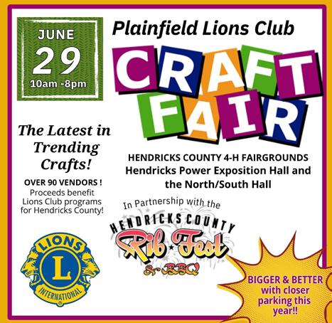 While you are at the fairgrounds sampling delicious ribs and BBQ, don’t forget to take time to visit the Plainfield Lions Club 3rd Annual Craft Fair Step inside, cool off, and do some shopping There will be 101+ Vendor booths to visit and there is sure to be something for everyone!