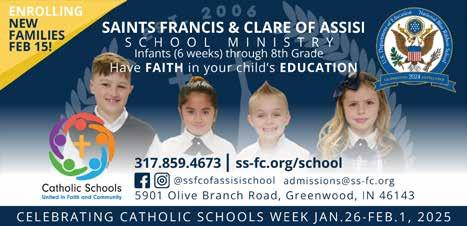 Saints Francis & Clare of Assisi • 5901 Olive Branch Road, Greenwood | (317) 859-4673 | Fr. Steve Giannini | Sat. Anticipation Mass: 5:30 p.m. | Sun.: 7, 8:45 & 11:30 a.m.