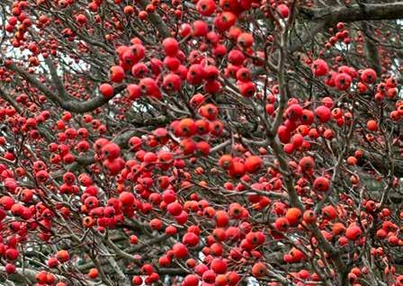 An ornamental tree that never fails to attract attention this time of the year is the hawthorn, with its displays of brilliant red fruit that persist well into the coldest winter months. Of the over 200 hawthorn species worldwide, nine are native to North America, and three have varieties that are widely planted. Although the fruit, known as haws or thornberries, will eventually be eaten by songbirds, especially chickadees, mockingbirds, catbirds and cedar waxwings, but also turkeys, the softer fruit of crabapples, dogwoods and viburnums are the first choice, so hawthorn berries provide beautiful winter interest for months.