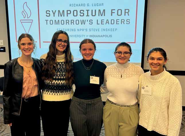 Juniors Lilian Bauman, Lauren Brown, Mia Michalak, Mia Nettles and Anna Rosario attended the Richard G. Lugar Symposium for Tomorrow’s Leaders at the University of Indianapolis on Dec. 9. Not only were the five Roncalli Royals nominated to attend this event, but they also received scholarships to study at the University of Indianapolis, if they so choose. Lilian Bauman shared, “We listened to Steve Inskeep, the keynote speaker, talk about becoming a strong leader by understanding the humanity of both sides of stories while still making informed, independent decisions in the political world. There were also many different breakout sessions with various topics about current issues. Overall, it