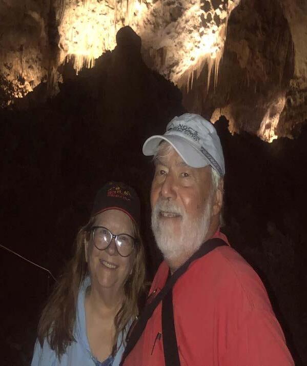 (Cover) Larry and Daina Chamness of Center Grove explore a copper mine in Carlsbad Caverns. | (Left) Exploring a cavern in Carlsbad Caverns. | (Right) The view from their window in Quartzsite, Ariz. (Submitted photos)