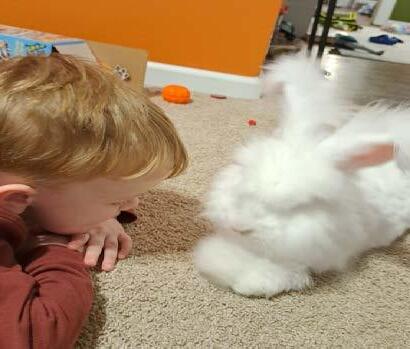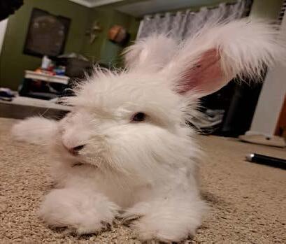 Before Henry and her husband, Garrett brought Roger and Jessica into their family, they thought long and hard about the consistent care necessary for Angora rabbit fur. Because the fur is so wispy, it tangles easily and requires consistent brushing.