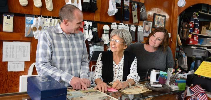 (Cover) From left, Jim Coffman, Shirley Miller and Mary Coffman DeVore. | (Left) Jim Coffman, Shirley Miller and Mary Coffman DeVore reminisce while looking at a copy of The Southside Times from 2011. In the article, Miller believed she would be closing the store, but a buyer stepped in soon after. (Photo by Nicole Davis) | (Right) Original owner Bob Kennedy of Eckstein Shoe Store, then R.E. Kennedy Shoe Repairing. (Submitted photo)