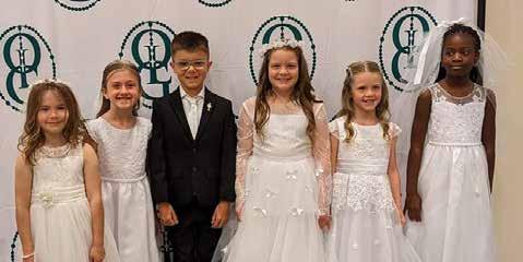 First Communion - Students at Our Lady of the Greenwood School celebrated faith and tradition during the first weekend of May. First was the May Crowning ritual. Eighth graders Dulce Gonzalez and Florencia Rodriguez flank second grader Brianna Trinidad as they process to crown Mary, Queen of Heaven. The following day, many second graders participated in their First Communion.