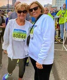 After the 2023 marathon, Sue Stone poses with her friend Marilyn Pascall, a fellow marathon lover from Kingsport, Tenn.