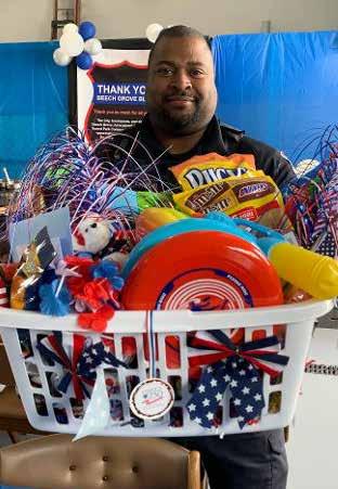 Officer Demarcus Johnson won the “Summer Fun” basket donated by the Samuel Bryan NSDAR (Submitted photo)