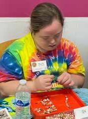 At The Hope Gallery in Bargersville, team member Sally Atkins of Franklin enjoys socializing with other members while she creates jewelry to sell in the gallery.