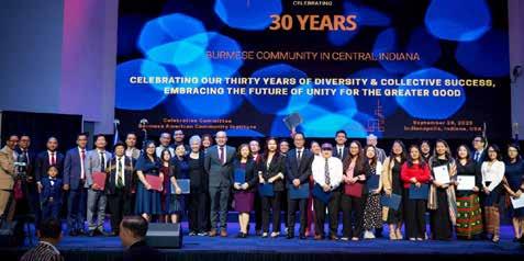 The local Burmese community celebrated 30 years in Central Indiana with an awards dinner at the CEBC Life Center to recognize more than 100 individuals and organizations that have significantly impacted and contributed to the development of the Burmese community. Honorees included the first 30 persons who resettled in Indianapolis, First Person Achievement Award winners (educational and professional careers) and Most Outstanding Persons Award winners.