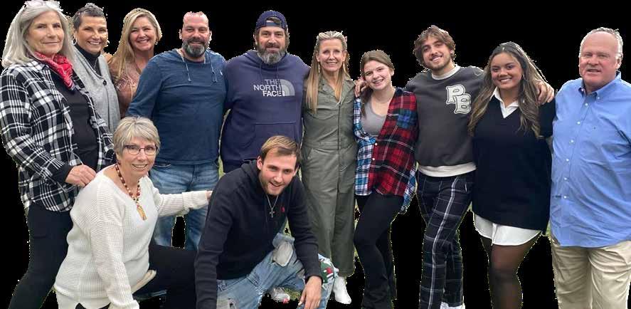 (Cover) Ethan Paulin (son of Chad Paulin), Ethan’s dog Gus, Pam’s middle sister Marcia Mayer Cochenour, Pam’s younger sister, Sally Mayer Swift, Pam Mayer Paulin, Mindy Morris Paulin (Chad’s wife), Chad Paulin (Pam’s oldest son), younger son Kevin Paulin, Casey Summers Paulin, Chloe Ray Paulin (daughter), Cameran Paulin, his girlfriend Ciara and Jon Cochenour (Marcia’s husband). Two weeks after the family gathered for this photo, Ethan died. He was Chad’s only child.