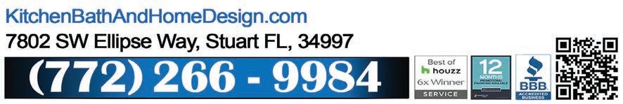 66 VOL. 559 A Copyrighted© My Living Media. 2023 All Rights reserved. To Advertise call 772-247-6849 Need More Coupons - MyLivingMedia.com General Contractor Nick Nobili Specializing In: •Kitchens & Baths •New Construction & Remodeling •Residential & Commercial •We Sell Cabinets to Contractors & Flippers! FREE Consultation & Design 10770 S US Hwy 1 Port St Lucie 772-732-4540 CGC 1527910 FREE ESTIMATES New Clients With this MLM Coupon. Must mention at time of estimate. Expiration 2/17/23 Kitchens & Baths FREE DESIGNS & Visit Us Online Natural Stone 218 SW Federal Hwy • Stuart (Just South of the Roosevelt Bridge) 772-678-6500 www.TileandDecorUSA.com Tile Professional Installation Synthetic Turf & Pavers GRAND OPENING! SCAN HERE • New ���������� • Ren��������i��n�� • Rem��������in�� • Rep�������� • Res��������ci���� Your Backyard Oasis Awaits… POOLS Starting at 561-782-4644 Camco Pools New Construction & Renovations $1500 off With this MLM coupon. Expires 2/28/23