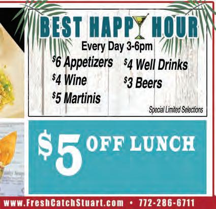 Need More Coupons - MyLivingMedia.com Minimum Purchase of $25 Not to be combined with other discounts. Dine in only. One coupon per table. Exp. Every Day 4-6pm $795 Appetizers $4 Wine $5 Martinis $4 Well Drinks $3 Beers 1411 SE Indian Street (First traf c light West of US#1) • www.FreshCatchStuart.com • 772-286-6711 OFF LUNCH OFF TAKE OUT Minimum Purchase of $25Minimum Purchase of $20 $5 $2 With this MLM coupon. Not to be combined with other discounts. Dine In Only. One coupon per table. Expires 10/31/22 With this MLM coupon. Not to be combined with other discounts. One coupon per table. Expires 10/31/22 B B OPEN FOR DINE-IN • TAKEOUT • CURBSIDE • DELIVERY OUTDOOR PATIO & SAFELY-DISTANCED TABLES CALL NOW! SENIOR SOLUTIONS INSURANCE AGENCY 1151 SW 30th Street, Suite F, Palm City, FL www.seniorsolutionsinsurance.com Serving All of the Treasure Coast & Palm Beach Matt & John Clark 772-222-6535 • We offer Medicare Medi-Gap/Supplement Plans • Medicare Advantage Plans • Prescription Drugs, Dental, & Vision Plans • Certi ed Medicare Insurance Planner • 16 years of Medicare experience • 3rd-generation insurance business • Family-owned & operated CRANE BUILDERS Passionate about quality & dedicated to making it a reality Kitchen Remodeling Bathroom Remodeling New Additions Custom Home Building CGC1510083 772 571 4640 Call today for a free design consultation www.cranebuilders.com