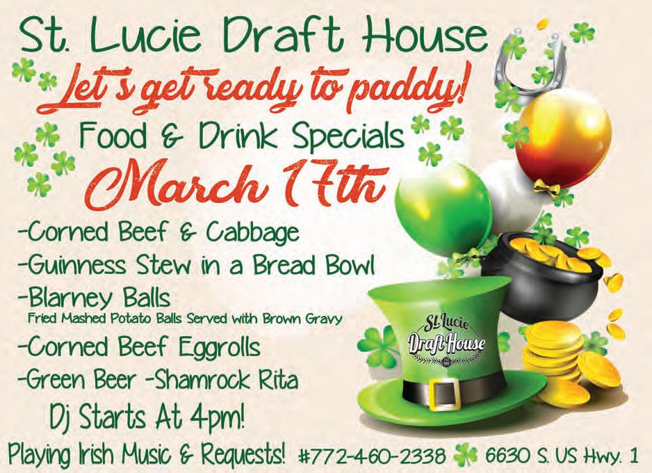 Copyrighted© My Living Media. 2023 All Rights reserved. To Advertise call 772-247-6849 Need More Coupons - MyLivingMedia.com Minimum Purchase of $25 Not to be combined with other discounts. Dine in only. One coupon per table. Exp. Every Day 4-6pm $795 Appetizers $5 Wine $6 Martinis $5 Well Drinks $4 Beers 1411 SE Indian Street (First traf c light West of US#1) • www.FreshCatchStuart.com • 772-286-6711 OFF LUNCH OFF TAKE OUT Minimum Purchase of $25Minimum Purchase of $20 $5 $2 With this MLM coupon. Not to be combined with other discounts. Dine In Only. One coupon per table. Expires 3/31/23 With this MLM coupon. Not to be combined with other discounts. One coupon per table. Expires 3/31/23 B B OPEN FOR DINE-IN • TAKEOUT • CURBSIDE • DELIVERY OUTDOOR PATIO & SAFELY-DISTANCED TABLES 1-800-830-8548 • Pizza • Pasta • Gelato • Desserts • Specialty Coffees Expanding rapidly on the Treasure Coast Call for opportunities 2331 S. US Hwy. 1, Ft. Pierce Specializing in Deep Fried Gelato Formerly A TOUCH OF BROOKLYN Coming Soon Now Hiring… SEEKING ENTREPRENEURS Looking to fill some EMPTY TABLES? We Can Help! Call for more details 772-334-2121