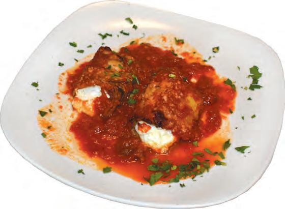 For an entrée, if you’re in the mood for traditional, cheesy Italian fare, then try Vulcano’s baked manicotti ($21.95). Perfectly-cooked tubes of pasta arrive over owing with rich ricotta cheese and covered in pomodoro sauce and shredded mozzarella. A de nitively crowd-pleasing dish, the manicotti’s robust avors kept us going back for more and more. If it weren’t for the fact that Abby had promised to bring leftovers home to her partner, she and