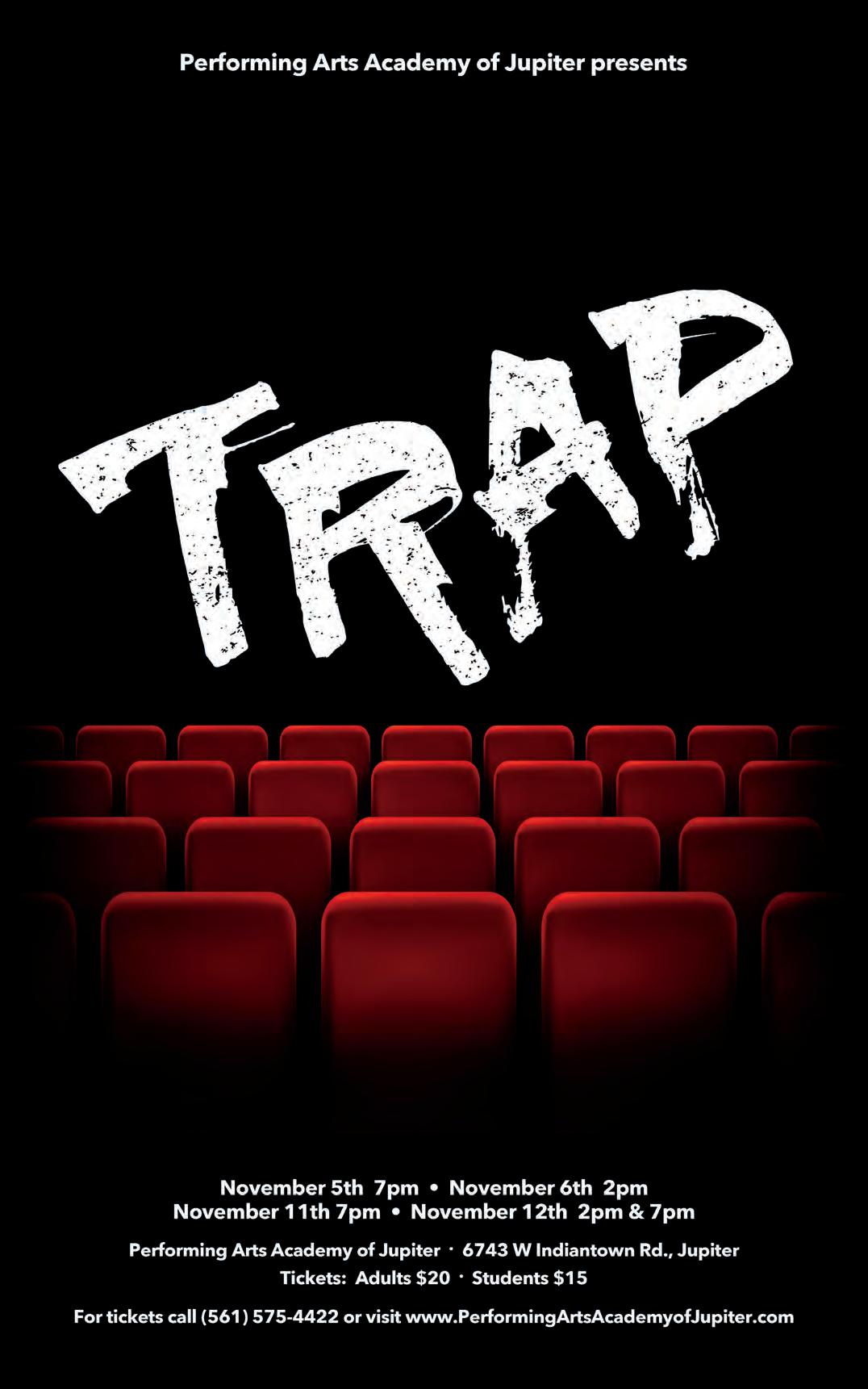 GET TICKETS 561.575.4422 Performing Arts Academy of Jupiter proudly presents "Unnerving, exhilarating, and wildly inventive, you’ve never walked into anything quite like Trap." A THEATRICAL THRILLER