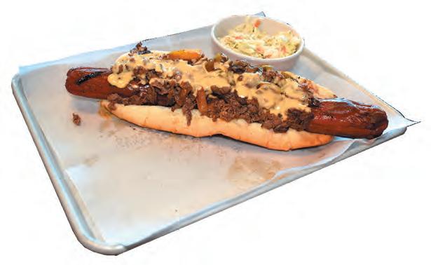 Abby couldn’t get enough of her Gino’s Cousin Footlong Hot Dog ($16)! A 100% all-beef hot dog is piled high with succulent shaved ribeye, plus tender-cooked peppers and onions, then drizzled with the restaurant’s signature beer cheese sauce. Be prepared to eat if you order this belly buster! They aren’t kidding… the hot dog is most de nitely 12” long, as it extends way beyond the soft bun! It’s cooked well, with a crispy exterior and juicy inside, and the luscious beer cheese elevates the dish from tasty to “distinctively delectable,” according to Abby.