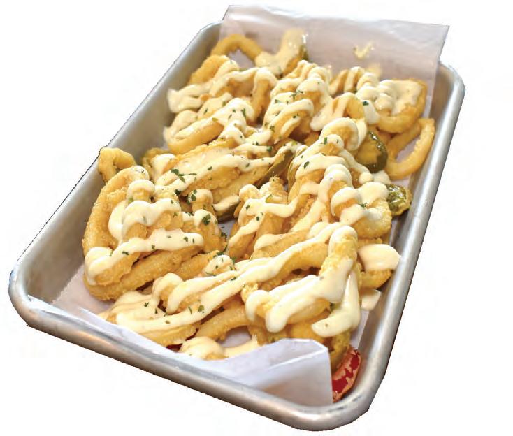 sauce, the tender-cooked burger towers so high that you almost have to unhinge your jaw to take a full bite. The Howling Rooster doesn’t skimp whatsoever on ingredients, so you’re getting a great value! Plus, the Gator Mike’s Burger is a refreshing update to a regular ol’ bacon burger, as the addition of the egg and hash brown patty bring in more avors and textures. “This is the perfect selection,” Abby declared, “for those who need a pick-me-up. It’s a mood-brightener!” She added, “Or, if you’re recovering from a late night out, then this burger will most de nitely boost your stamina back to normal.”