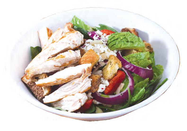 If you’d prefer a lighter dish, then select the “Bust a Move Salad” ($15), which is so tasty, yet light and refreshing, that it will truly make you want to dance. A generous portion of spinach leaves and Spring salad mix is layered with grilled chicken, homemade crunchy croutons, avocado slices, halved strawberries, chopped red onions, crumbled goat cheese, and sliced almonds, then served with a side of tart raspberry balsamic dressing. The farm-raised grilled chicken breast strips, which are free of antibiotics, are so juicy and tender that they practically melt in your mouth, while the homemade Rye bread croutons offer a satisfying crunch and mild avor. All of the vegetables and fruit are brilliantly bright and fresh. And that goat cheese?! It boasts a deep, nutty taste that tantalizes every tastebud. Busters doesn’t skimp on any of these quality ingredients, either! If you are able to nish the large bowl of salad, then you’ll be comfortably full for the day; otherwise, you’ll have some delicious leftovers calling your name later.