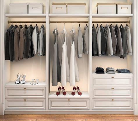When you’re in the mood for something modern and bold, the Brio Collection™ answers the call. Sleek corners and clean edges surround the system of at-front doors and drawers. Display your carefully curated wardrobe against a clean nish for a timeless look.