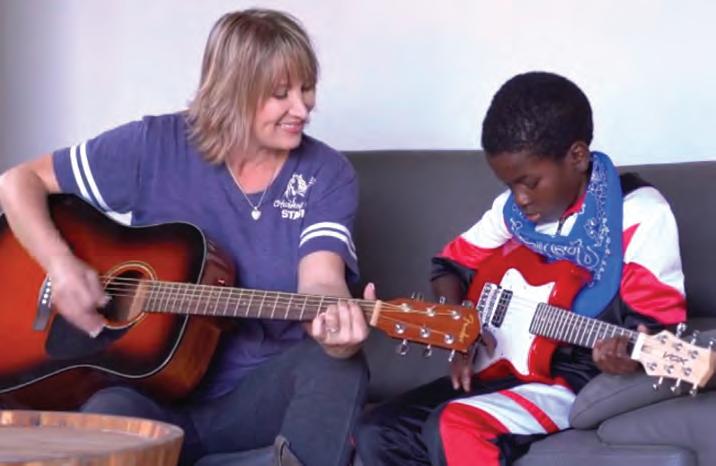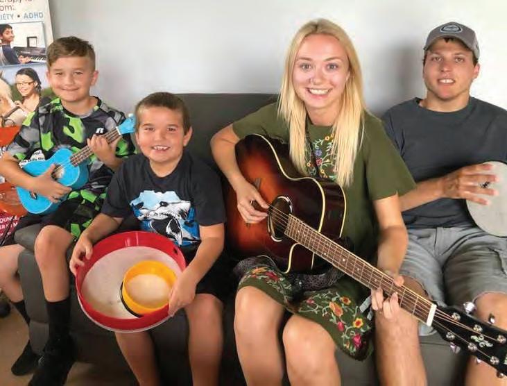 It was Kristi Huddleston’s lifelong dream to have a horse ranch to help children, so she made it happen! Kristi combined her passion for music with her love of horses to found Harmony Hope Stables, a non-pro t, charitable safe haven and place of healing and learning for children with autism, ADHD, PTSD, depression, and anxiety as well as those who are victims of abuse. Harmony Hope Stables is the only PATH (Professional Association of Therapeutic Horsemanship) Certi ed Center in Martin County and provides equine and music therapy to these children in need. Kristi is a trained equestrian with 8+ years of experience and is the Path Certi ed ESMHL (Equine Specialist in Mental Health and Learning) at the ranch. She is also a talented musician and songwriter who, along with her Board Certi ed Music Therapist and guitar/ukulele instructor, has created a serene environment for children to express themselves through song. A victim of and witness to physical and sexual abuse herself when she was young, Kristi was unsure that she would ever be able to work with abused children, afraid that the experience would be too triggering for her. But, after some intensive EMDR (Eye Movement Desensitization and Reprocessing) therapy, Kristi explains, “I felt that my trauma was nally in a safe place.” Giving the credit of her healing journey to horses, music, Jesus, and a great mental health therapist, she continues, “The combination of them all gave me the strength to now help others!” Thus, Harmony Hope Stables partnered with Hibiscus Children’s Center and the center’s Chief Operating Of cer & Licensed Mental Health Counselor, Caroline Vineyard and Harriet Ostertag, MA, to serve the abused, abandoned, and neglected children in our community every single week. Kristi’s motivation to serve children with autism stemmed from her volunteer work at another local horse ranch. While there, she met “Awesome Anthony,” an autistic boy with whom she made a heartfelt connection. She saw the progress that Anthony was making with the horses, and later introduced him to music therapy. Anthony is now a participant in the Harmony Hope Stables’ program and his mother, Susan, serves as Secretary on HHS’ Board of Directors. The impact that Harmony Hope Stables has made in the lives of both autistic and abused children has been profound. Kristi says, “The best part is witnessing the therapeutic moments every day at the ranch. Our team beams with joy every time we see the impact our horses and music are making. It’s like magic right before our eyes when we see a child’s self esteem boost, anxiety calm, and we teach them how to regulate their anger.” The music instruction and songwriting opportunities teach them to put their pain onto paper and express their emotions in a healthy way. For children with autism and anxiety, the program helps to teach them to slow down, overcome noise sensitivities, and build con dence, focus, and leadership skills. Additionally, being around and
